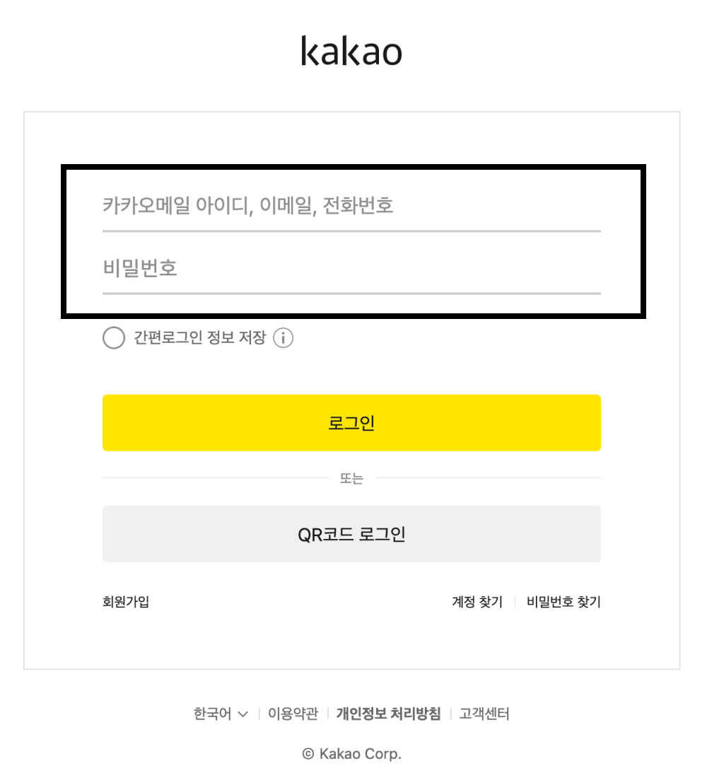 2카카오계정 아이디/비밀번호 입력