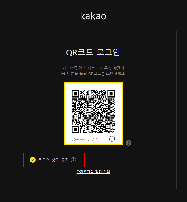 QR코드 로그인하는 경우, [로그인 상태 유지] 선택하고 로그인하세요.